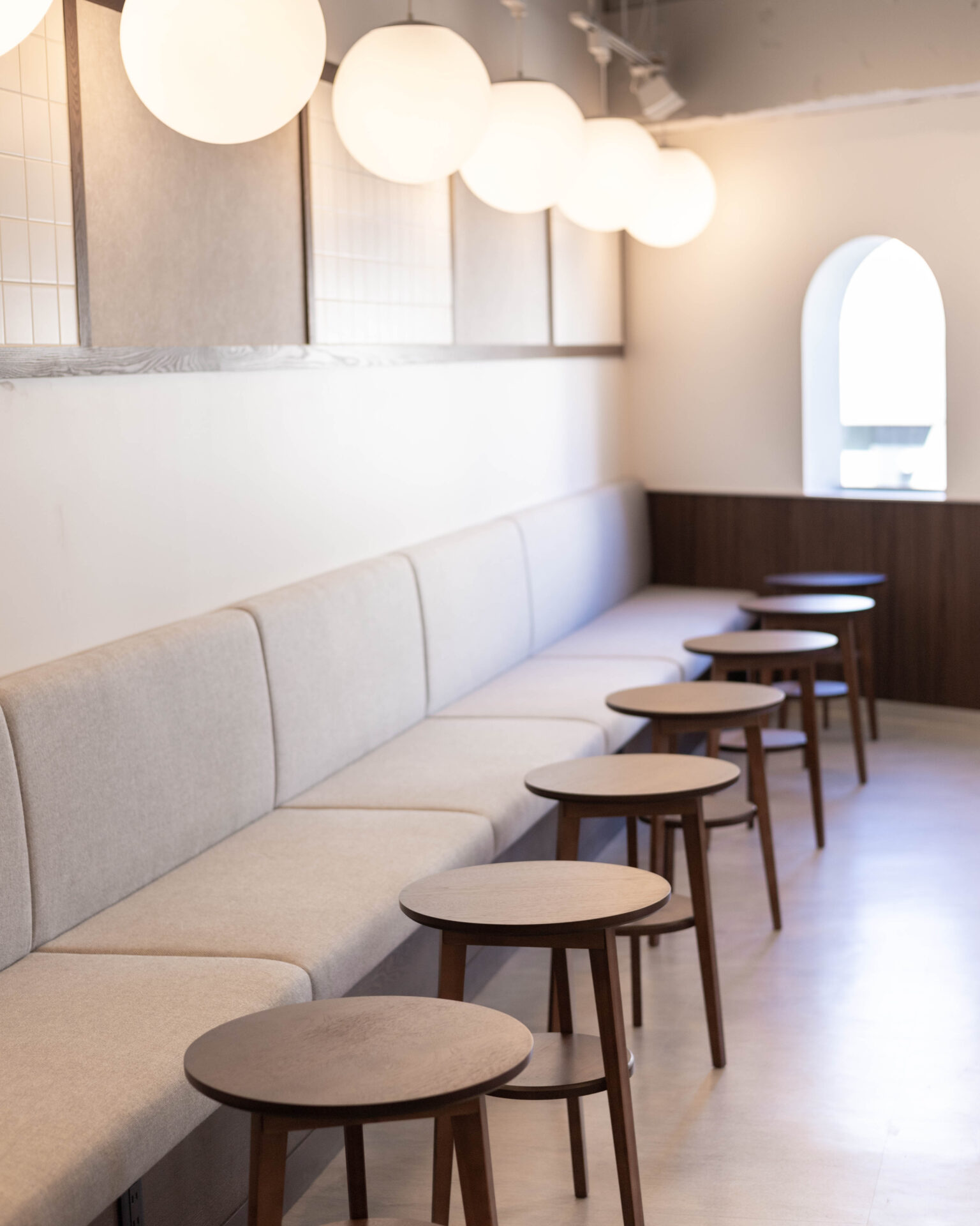 白を基調とした店内には、温かみのある照明が灯り、都会の真ん中に見つけた「大人の隠れ家」のような佇まい。大きな窓から差し込む柔らかな光を感じながら、日常の喧騒から切り離された上質なひとときをお過ごしください。