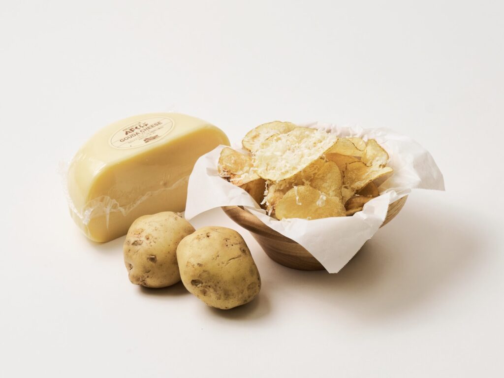 白く滑らかな肉質で、ホクホクとした食感と豊かな旨味が特徴の「伯爵いも」と、芳醇な香りとクセの少ないマイルドな味わいが特徴の「ゴ ーダチーズ」を、ザクっと軽やかなチップスに仕上げました。