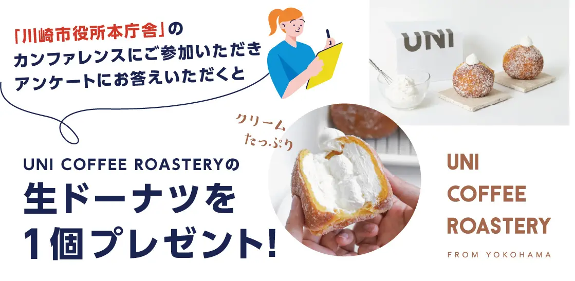 「UNI COFFEE ROASTERY 川崎市役所」の店内をカンファレンス会場として提供するほか、同時開催されるイベント「みんなの川崎祭」フードコロシアム(会場:市役所広場)にて、川崎市の国内友好都市とコラボレーションした限定メニュー3種を販売。