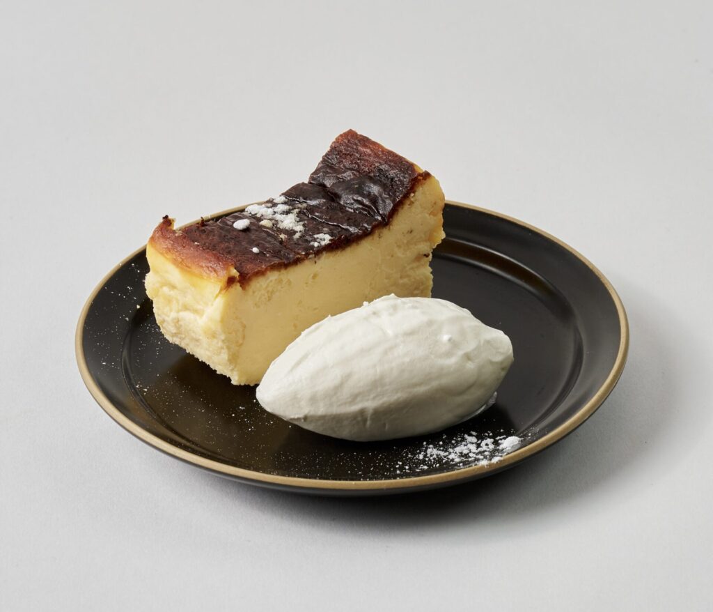パティシエが何度も改良を重ね、こだわりの“湯煎焼き”で仕上げた自慢の逸品。上部はベイクドチーズのように香ばしく「さっくり」と、生地の外側は「しっとり」、真ん中部分はまるでレアのように「とろり」とした食感に仕上下ています。